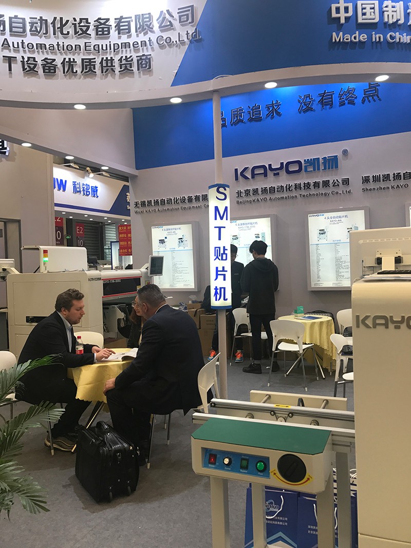 3月的上海,春暖花开,万物复苏。为期三天的2019慕尼黑上海电子展(electronica China)在万众瞩目中圆满落幕。凯扬自动化携六头全自动贴片机,八头全自动贴片机,AOI检测设备参加了此次展会,并在现场展示了贴装技术,吸引了全国各地的客户、工程师、游客驻足参观、咨询。展会现场人来人往,展台前咨询的客户络绎不绝。也有一些朋友对我们的产品特别感兴趣的,坐下来慢慢了解的,我们的工作人员也会对其做详细的介绍。