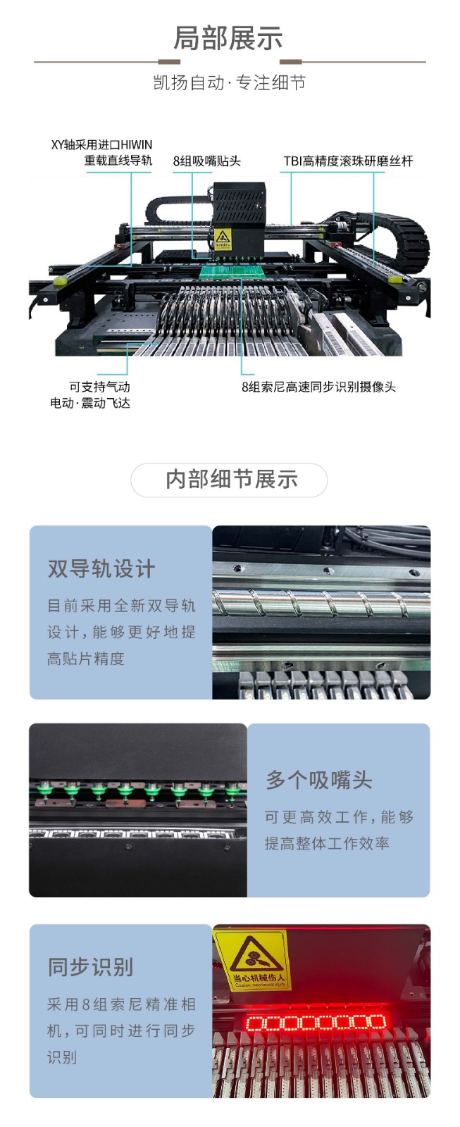 贴装头数量八头(无需换吸嘴)Z轴移动范围20mm